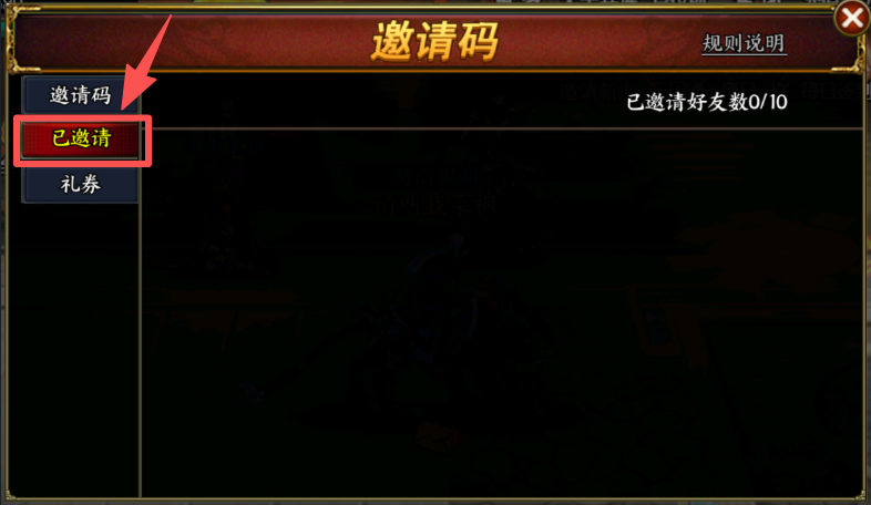 游戏界面内右上角点击邀请新人即可进入邀请码界面。