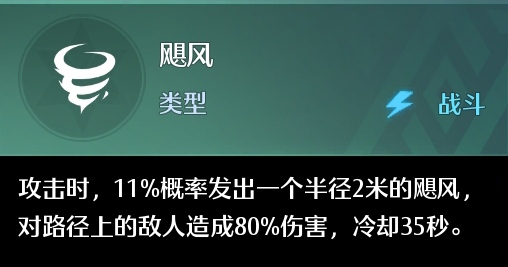 有两次充能的输出技能,主要是为了给敌人挂上【风蚀】和给自己挂上狂欢效果为特技二做准备。