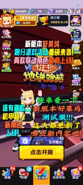 #地铁跑酷 先锋测试好莱坞新版本重磅来袭!快来看一下这次好莱坞测试服具体都更新了哪些新内容吧!