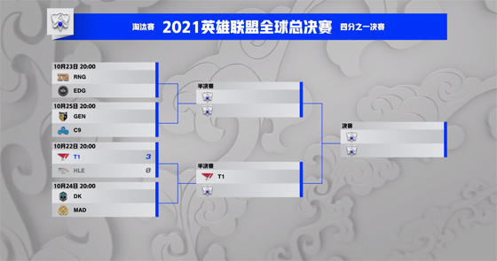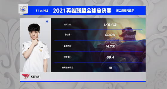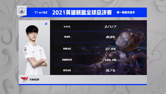 北京时间10月22日晚上8点,2021英雄联盟全球总决赛四分之一决赛的揭幕战由LCK三号种子T1对阵四号种子HLE!曾在今年LCK赛区S11资格选拔赛中同T1鏖战五局的HLE今晚状态低迷,两队除中路以外的实力差距十分明显,最终T1干净利落3-0零封淘汰HLE晋级四强!