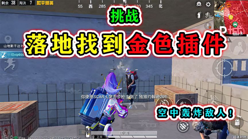 和平精英:挑战超体对抗,落地秒捡“金色插件”,空中轰炸敌人!