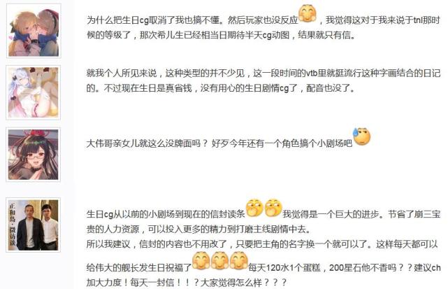 但也有玩家觉得以后角色生日都像原神一样搞生日CG并无不妥,在节省了游戏的人力以后可以将更多的精力放到主线内容的打磨中去。同时因为读信模式的设计十分简单,如果能将角色的各个装甲都拿来过一遍的生日的话,那么无论是对于玩家还是游戏都是双赢的局面。