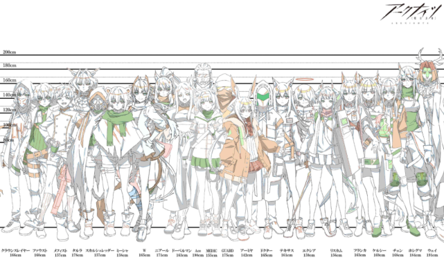 而最矮的就是小驴子阿米娅了,1米4的身高是真的太小只了,多亏这动画没出现杜林,否则真的是最矮的了,另外没想到梅菲斯特和浮士德也这么小只,和君君一样高,君君戴上兜帽之后还过了1米6了,顺便吐槽一下能天使这个光环,距离头顶有10cm,光环算身高,能天使能有1米7.