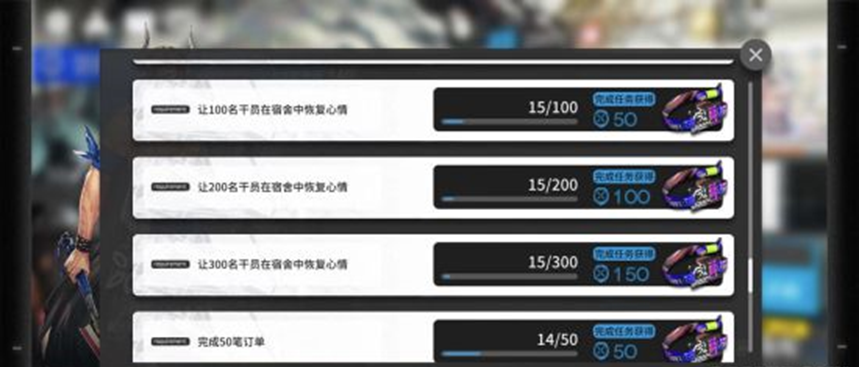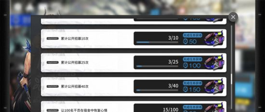 挂满助战,平均一天至少有100左右(如果达不到的朋友就赶紧加好友吧,不然下面的任务也不好做),加上每天参观好友基建的300,只要你活跃好友够多,这个任务并不是什么大的问题。