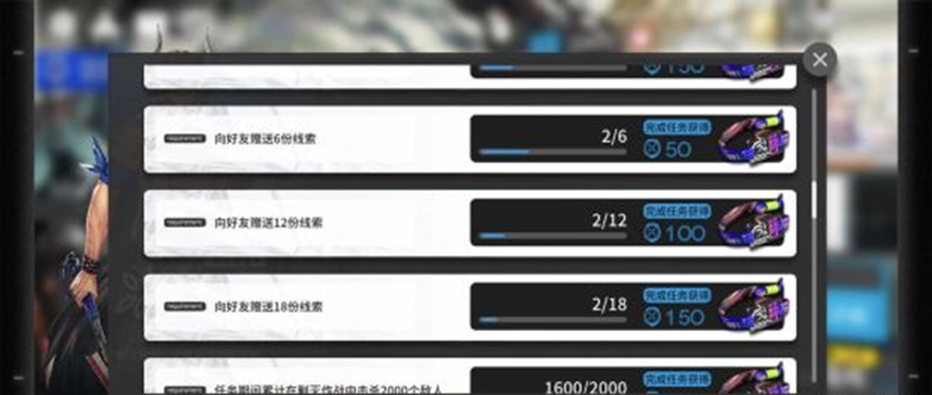按照平均一天3个线索来算,其实并不是什么难题,问题是下面还有开趴体的任务,很多小伙伴就舍不得送线索了,,其实线索上限是10个,然而好友赠送的线索是不占用这个库存的,所以。。。请找合适的小伙伴长期py(互塞线索7)吧!