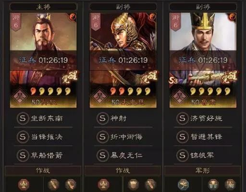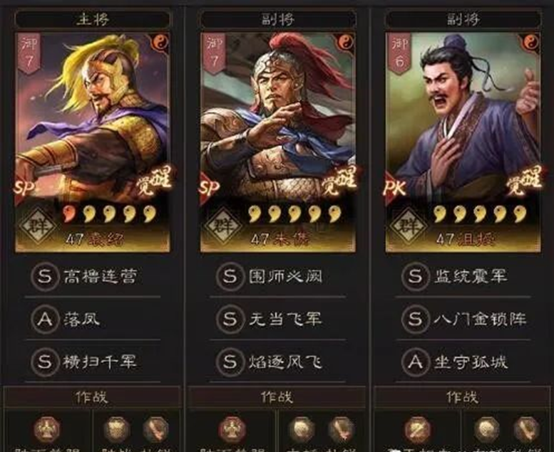 最后一队也是大家比较熟悉的SP群弓了,主要就是配合沮授打控制,从而获得战斗的胜利,算是平民逆袭土豪玩家的一个机会吧,落凤换成纵兵劫掠的上限会更高,当然如果肯把威谋靡亢让出来的话,强度是真正的拉满了。
