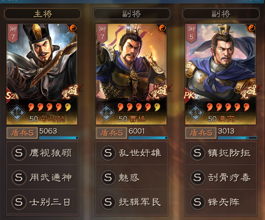 定义一个T0队伍的标准就是是否能多穿,并且表现稳定!所以三势吕和虎臣弓可以排除!而剩下的T0队伍就只有,太魏盾、吴骑、吴枪、SP袁绍武锋三仙盾和麒麟弓可以上榜!