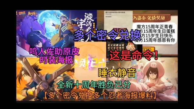 密令兑换奖励!鸣人佐助时装原皮海报!
