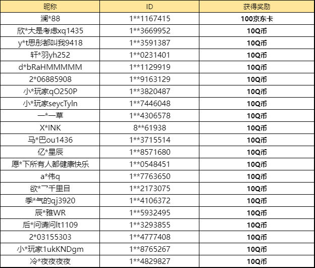 为了保护大家的个人隐私,以后开奖信息将由部分屏蔽的昵称+ID组成,小伙伴们可一定要仔细核对哦~