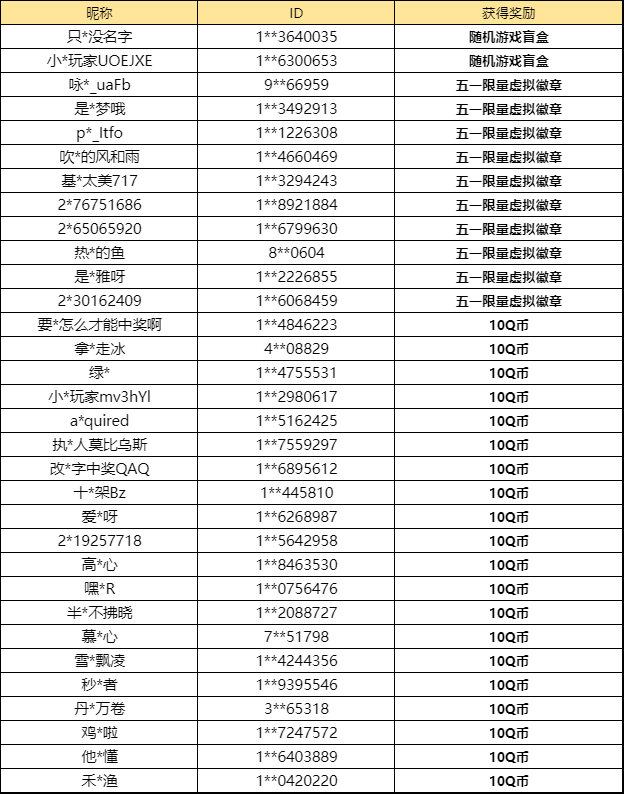 为了保护大家的个人隐私,以后开奖信息将由部分屏蔽的昵称+ID组成,小伙伴们可一定要仔细核对哦~