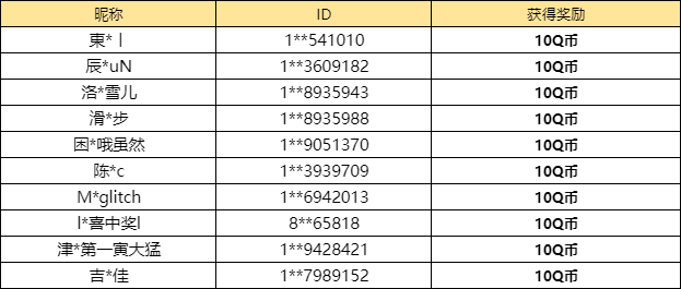 为了保护大家的个人隐私,以后开奖信息将由部分屏蔽的昵称+ID组成,小伙伴们可一定要仔细核对哦~