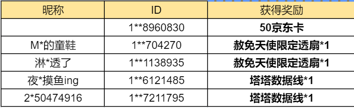 为了保护大家的个人隐私,以后开奖信息将由部分屏蔽的昵称+ID组成,小伙伴们可一定要仔细核对哦~