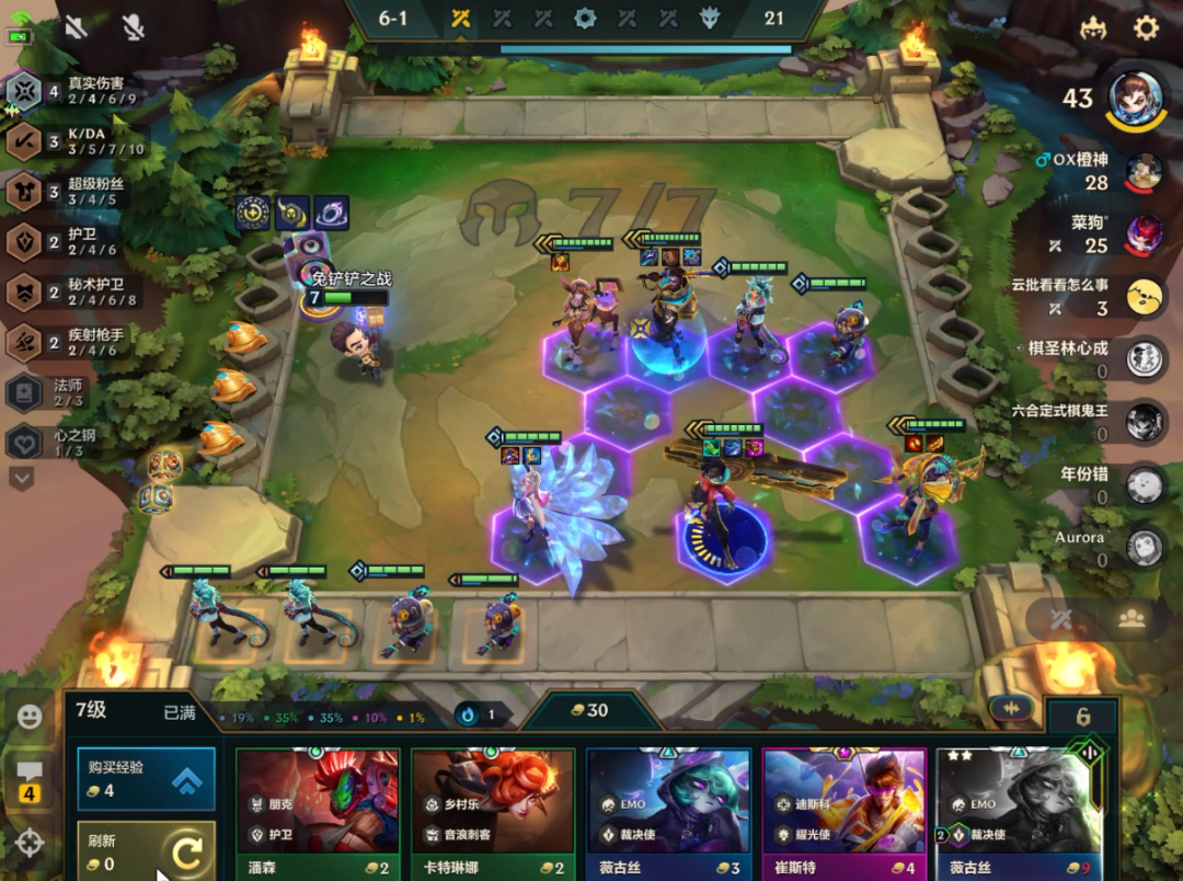 赛娜三星后升人口,因为这里是炼狱合约所以7人口D到底了。大家可以上8补璐璐狐狸完美羁绊再D整体三星