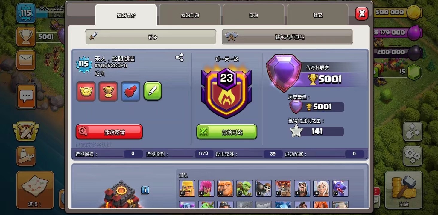 部落联赛有意的加#YUQV2C0PG,水晶杯以上的联赛