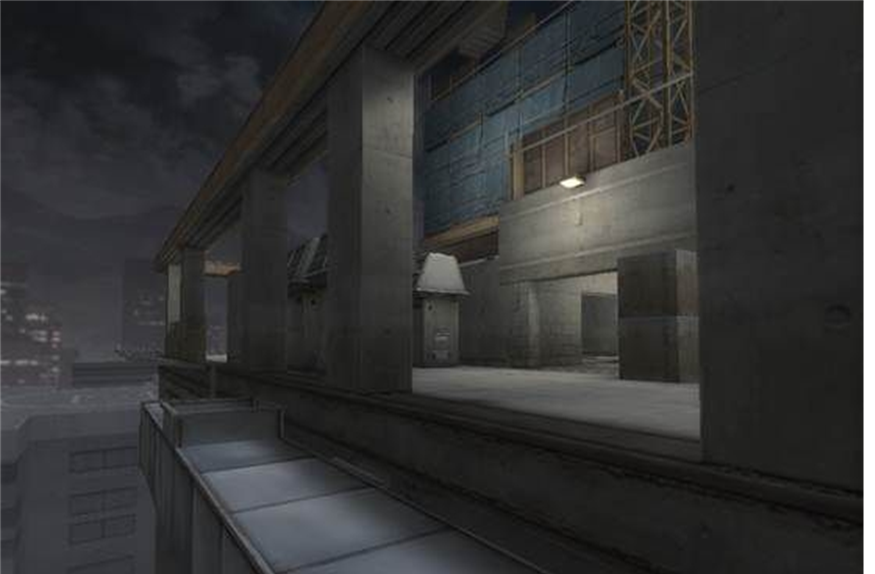 地图具有多层结构,通道较多,具有多条进攻路线。规划好路线,进行绕后和迂回是取得最终胜利的关键。大楼外是能跳出的,可要小心坠楼哦!