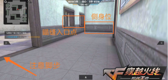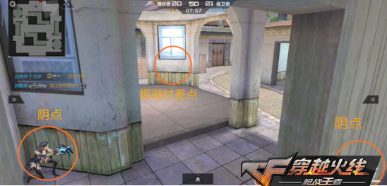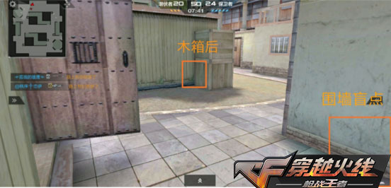 围墙盲点在卡敌人无敌时间后打提前枪,还能退回右房。而木箱后在击杀对手后需要扰乱敌方死亡视角,木箱可穿透,容易被穿杀,或者选择贴墙转中路走廊,伺机再战!