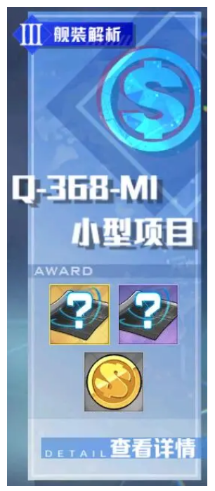高效大量获取科研船图纸的项目,代价则是没有装备图纸,不宜多做,对一般玩家来说主要是用于短时刷新科研的工具项目,同时也是大量获取心智单元的手段之一。