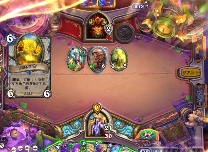 但是一旦发现对面是快攻类的战士卡组时,我们就可以使用卡组本身的质量来碾压对手(遇见海盗战或者奥秘猎之类的建议不要吝惜那两张7费的解牌直接交掉以防任务没做完就直接被打死)。