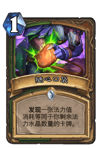 标准与狂野的随心口袋可以看成两张卡,标准卡池浅随心口袋类似于定向发现(比如剩1费用随心口袋大概率发现雷霆绽放,因为标准德鲁伊加中立卡池就五张0费卡)。狂野随心口袋不想说,卡池太深。