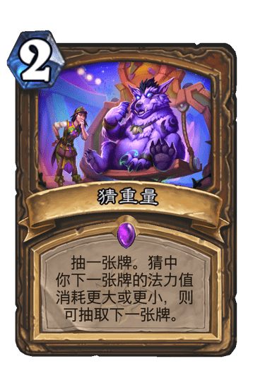 一张优质的德鲁伊过牌卡,一般都是2费过2,少数情况下是二费过一。猜重量退环境对于德鲁伊影响不大,德鲁伊一直不缺过牌,新版本肯定会给德鲁伊新的过牌。