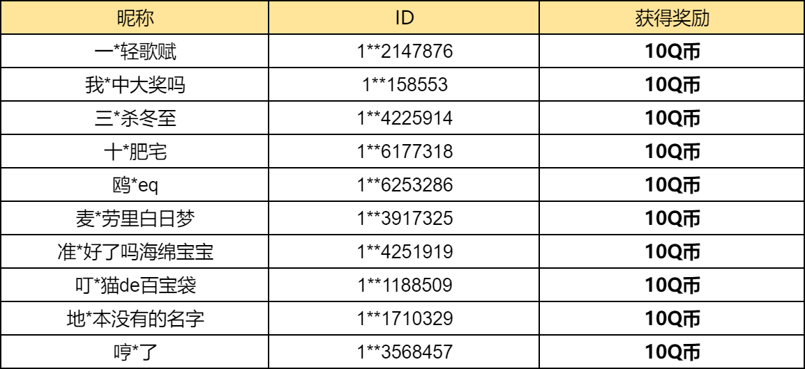 为了保护大家的个人隐私,以后开奖信息将由部分屏蔽的昵称+ID组成,小伙伴们可一定要仔细核对哦~