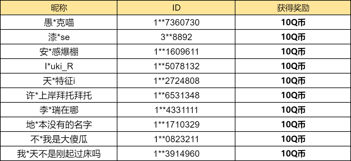为了保护大家的个人隐私,以后开奖信息将由部分屏蔽的昵称+ID组成,小伙伴们可一定要仔细核对哦~