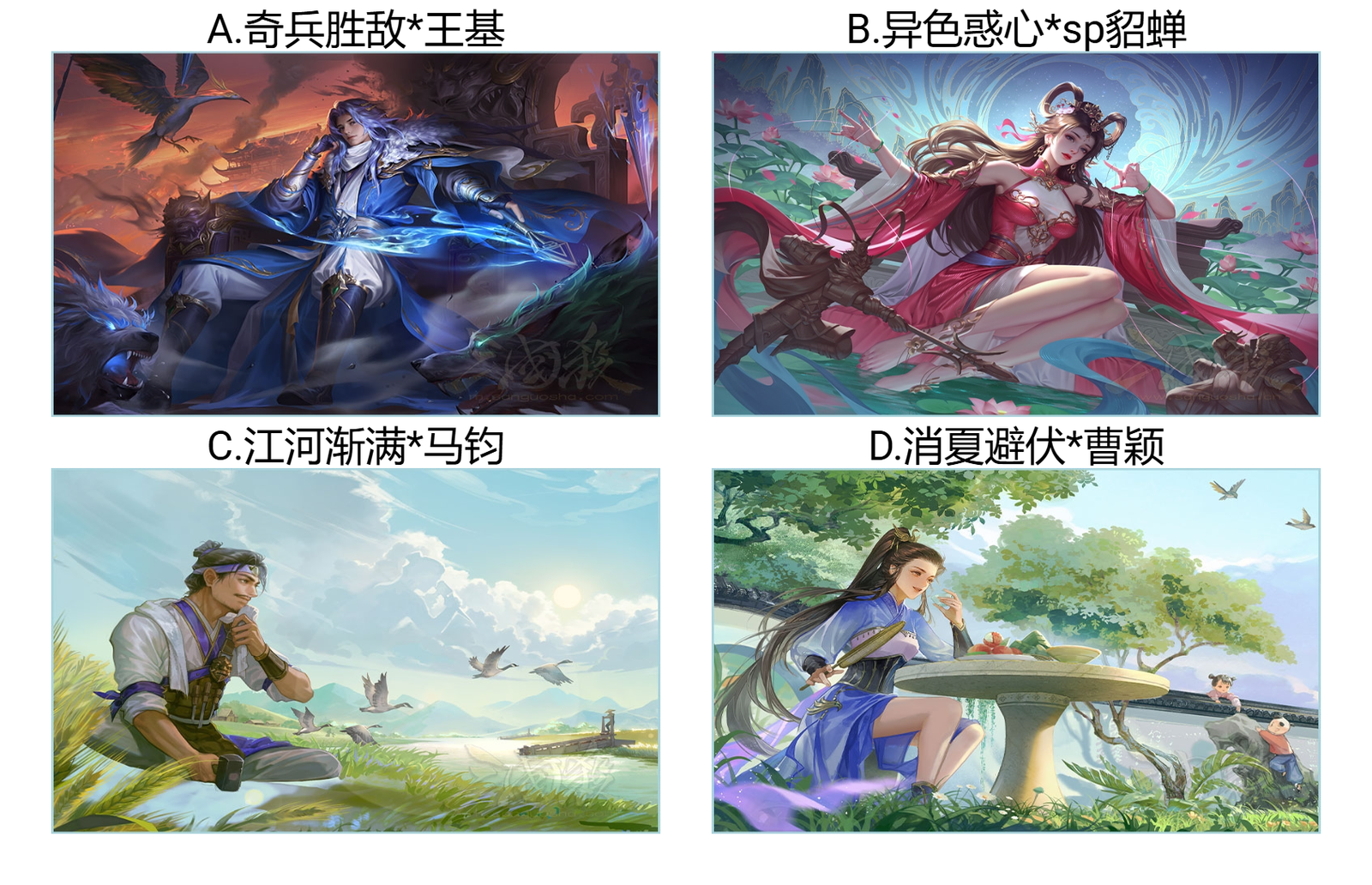 Hello,各位小伙伴们大家好啊!三国杀上新了四款新皮肤,它们深受玩家们的喜爱。不知道大家最喜欢其中的哪一款皮肤呢?欢迎投票选出你最喜欢的一款皮肤并在评论区分享出来,投票即有机会赢取奖励哦!