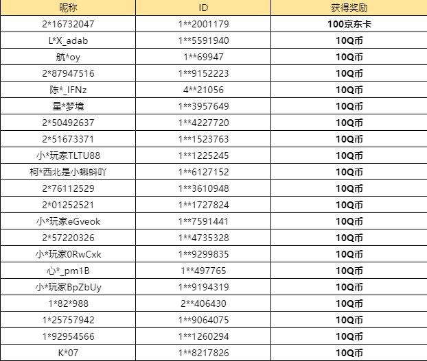 为了保护大家的个人隐私,以后开奖信息将由部分屏蔽的昵称+ID组成,小伙伴们可一定要仔细核对哦~