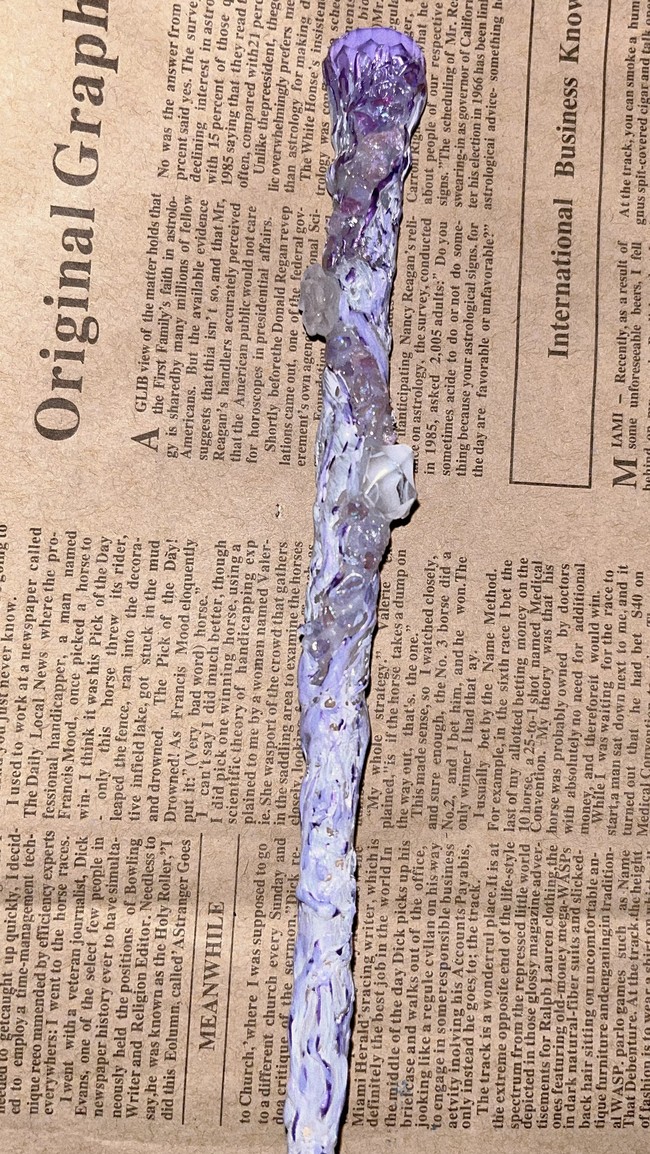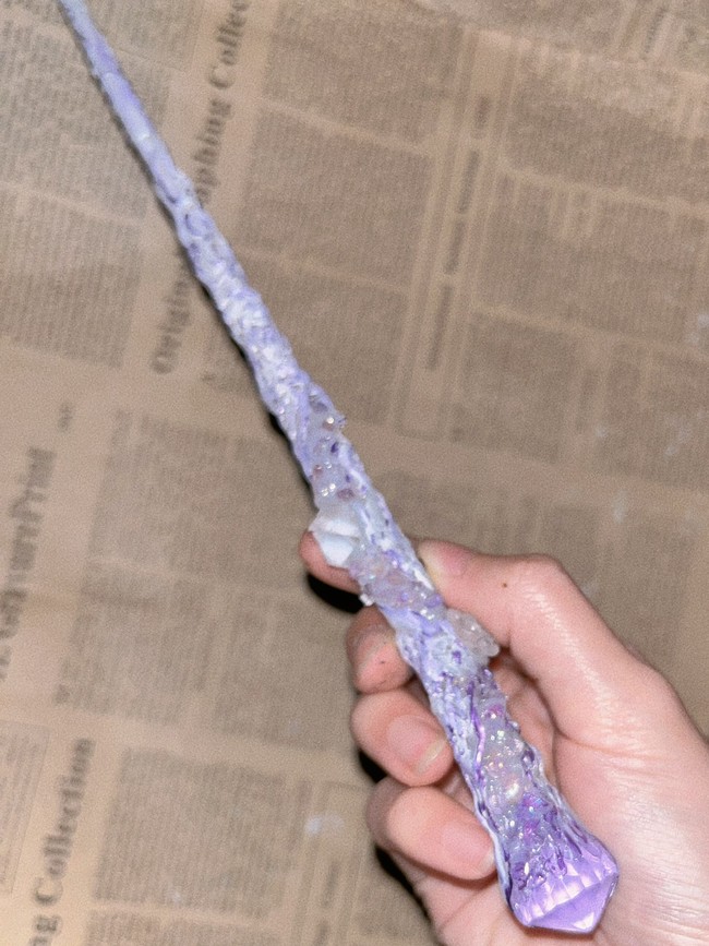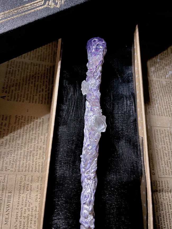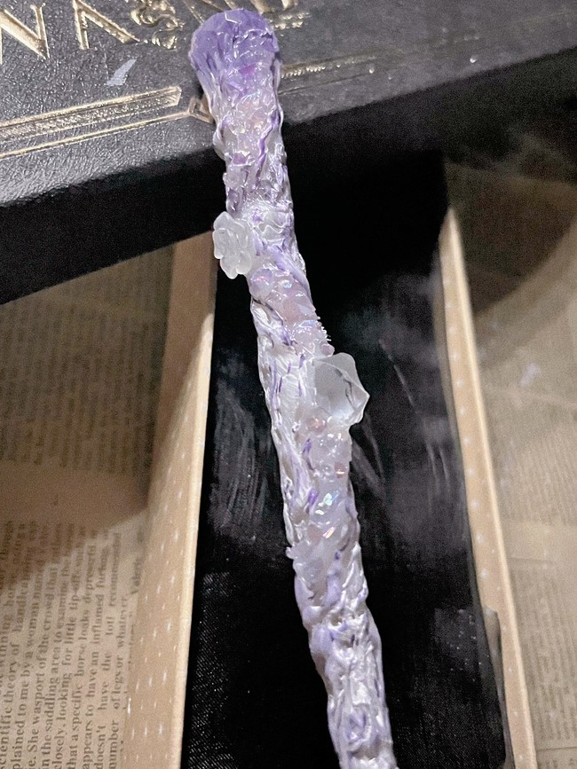 【寄语】“你是踩碎星光落入我梦境的一袋幻想......”是根据哈利波特魔法觉醒转盘服装梦境边缘自己原创设计的魔杖喔~杖头主要采用了淡紫色镭射碎石与透明紫色宝石,在阳光下发出绚丽的光彩!碎石上镶嵌有透明的白色玫瑰花与冰块,杖身由淡紫色与白色混合而成,犹如游离在梦境边缘一般,非常梦幻最后一张图为本店其余梦幻系列魔杖主页有每一根的详细介绍.