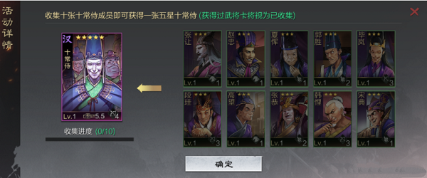 3、与众心归附活动的机制相同,对于在以往赛季中未能兑换出5星十常侍的主公,在报名<第二赛季>,并完成赛季返回备战区后,将在下一次征服赛季中激活该活动,重新获得兑换十常侍的机会。希望主公莫要再次错过。
