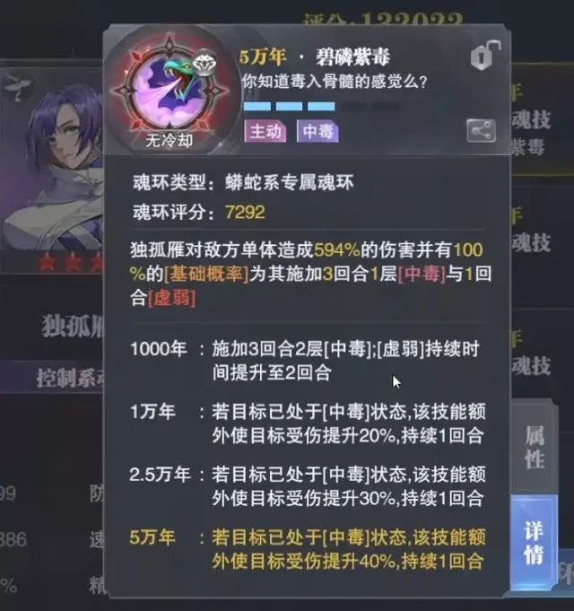 独孤雁:1技能【碧磷紫毒】拥有施加【虚弱】效果的能力,而【虚弱】效果则可以让对方不能使用普攻,只能使用技能,因此这个2回合的【虚弱】效果也是限制玉小刚非常过硬的手段
