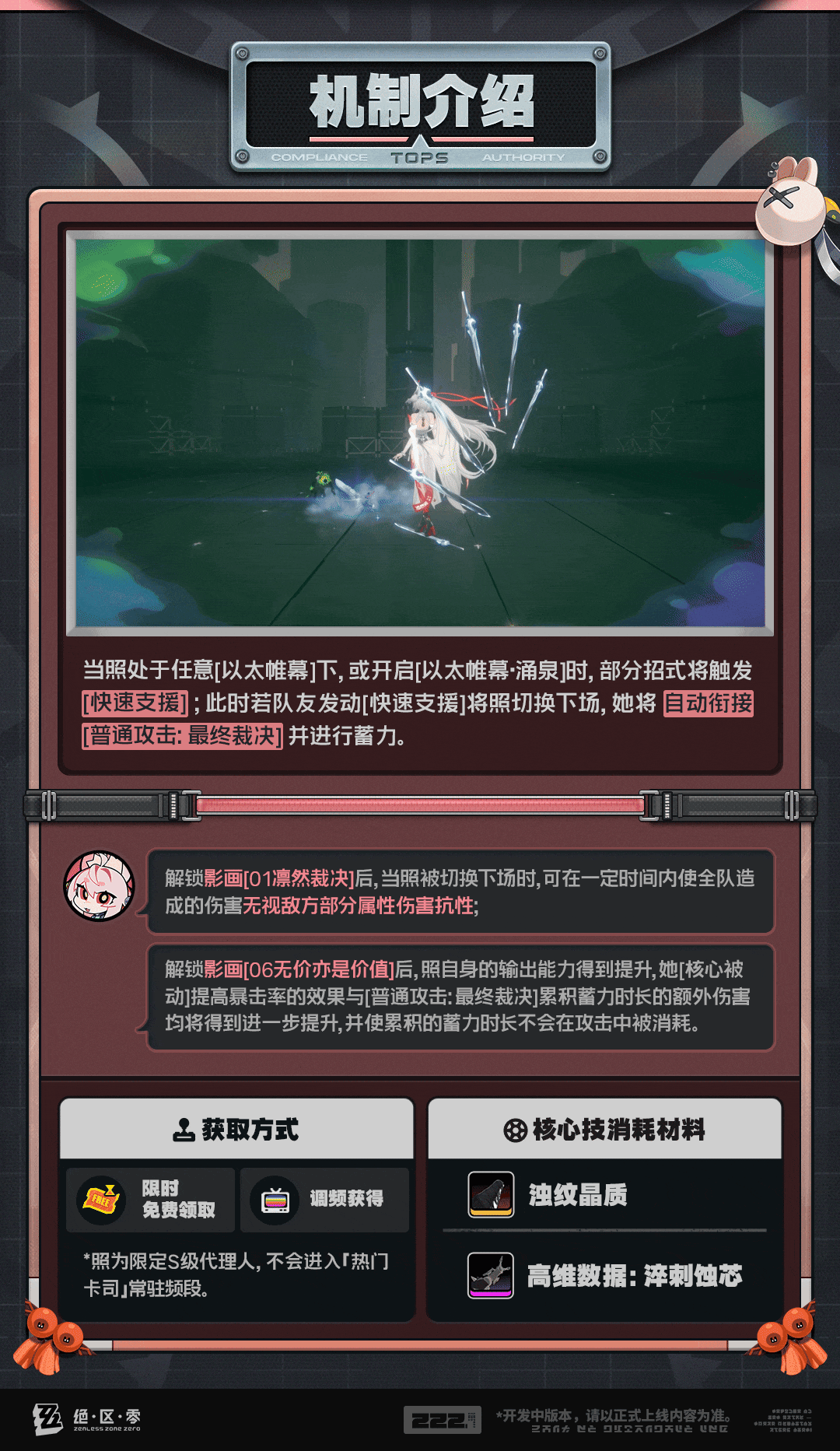 资料库中已收录代理人【照】的战斗相关信息,重点内容解析完毕,请查收。