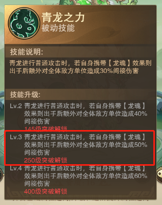 较为常规的二技能,可惜三技能不是增加暴击,这意味着青龙要流出一个技能位置给暴击,才能达到理想的输出效果