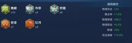 小编这里推荐的是3红月+7异变、6狩猎+4夺萃、10鹰眼,这一套的话就可以说是比较全能,可以帮我们平稳的渡过前期,在我们的装备初步成型之后就可以去打团了!