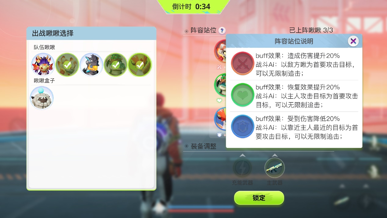 配置好啾啾、站位和武器后,点击锁定即可开始战斗!