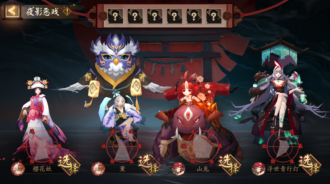 每局夜影恶戏开始时,阴阳师可从提供的式神选择中选择6名式神。