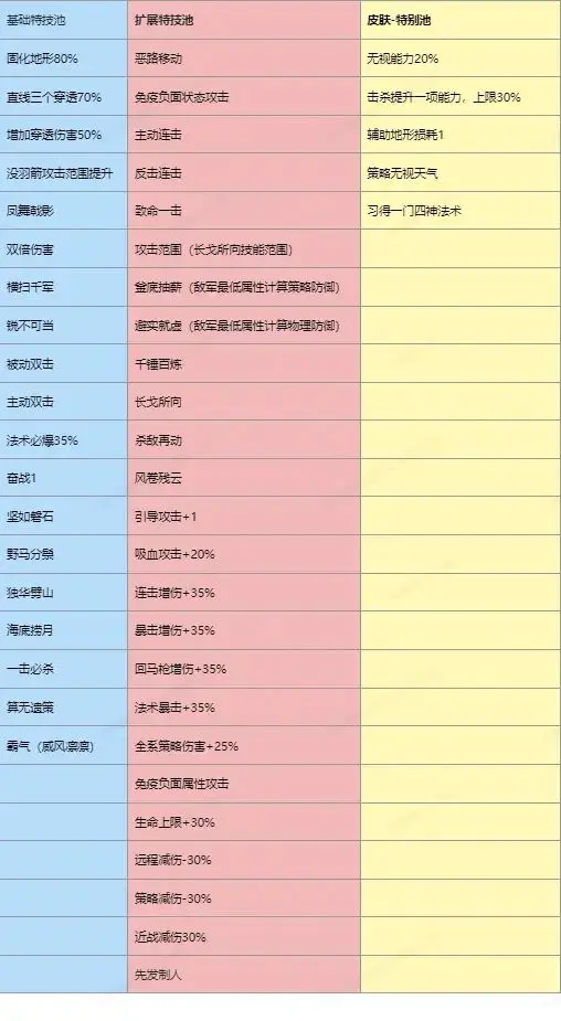 4、天禀:指武将自带专属特技,特技名称格式为"天禀·XX"。 绝技:指武将自带专属主动技,兵种自带主动技能不算做绝技。