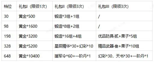 【活动详情】前往商城购买黄金,可享有双倍福利!即充值30元可以获得596黄金,部分档位享有单充礼包~春节期间和单充礼包加量重合。