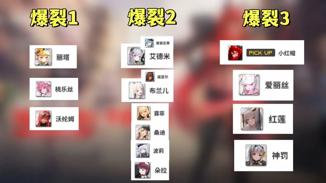 基础选角思路:爆裂1优先选万金油丽塔,其次是桃乐丝,最后是沃纶姆!