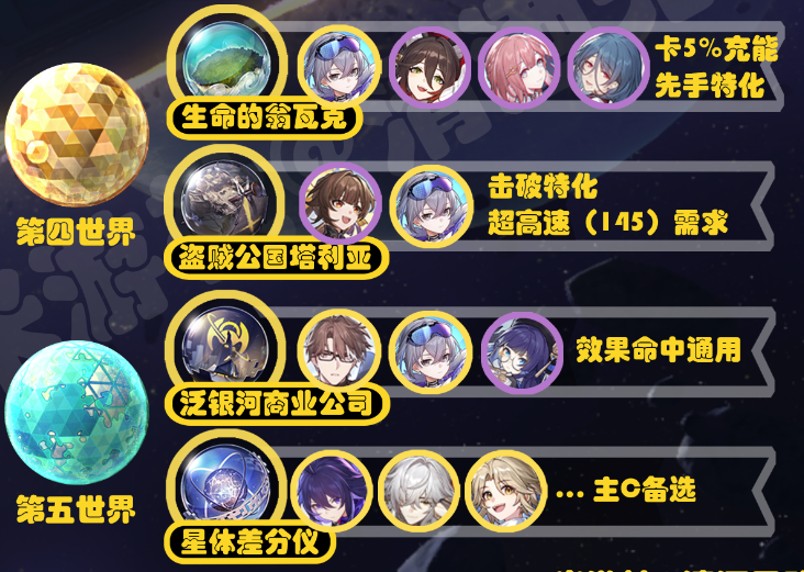如果有角色不在图中却想知道适配遗器的,可以查看下面的一图流合集。