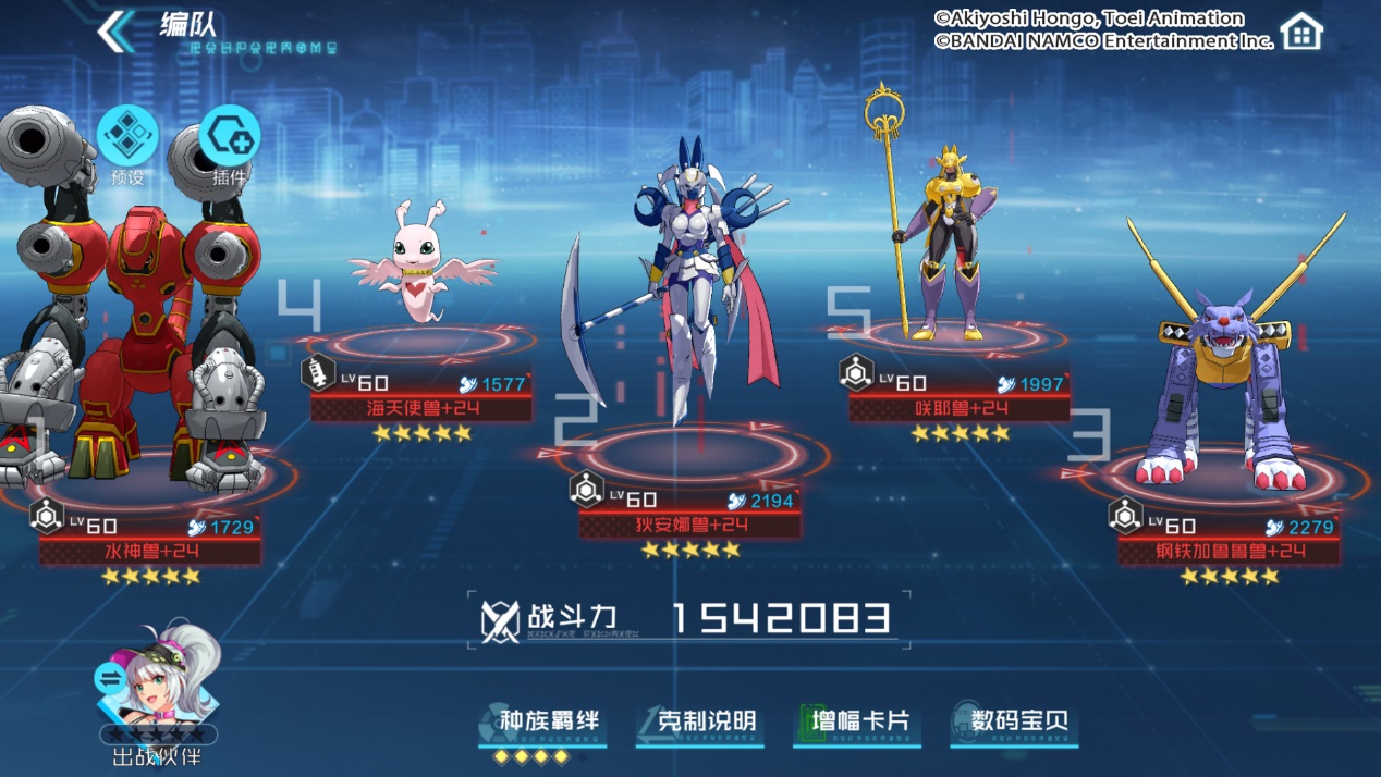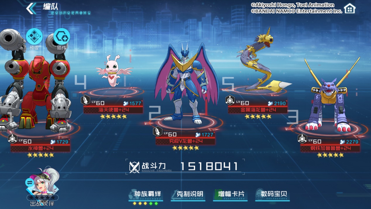 编队特色:本套阵容推荐使用爆发的增幅卡片。海天使兽的得意技可以为水属性队友增加涨潮,其治疗和护盾效果能大幅提升整体队伍的生存能力。金属海龙兽的得意技是游戏中最强的抑制AP回复的技能,一旦启动便可让对手陷入无AP可用的尴尬境地,配合队伍中较多的能量插件,让金属海龙兽尾速出手,可以在第一回合就超频让敌方陷入水域光环的AP恢复压制。