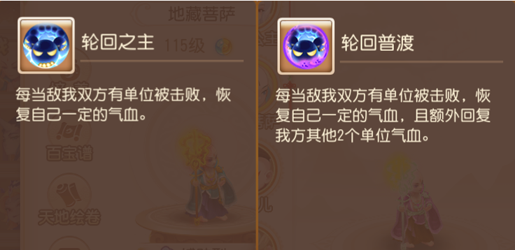 本次进阶后,轮回之主进阶成轮回普渡,让这单体回血技能变成群体回血,从增加自身生存变成群体增益技能,进一步保证了队伍的生存能力,实用性大大增强。