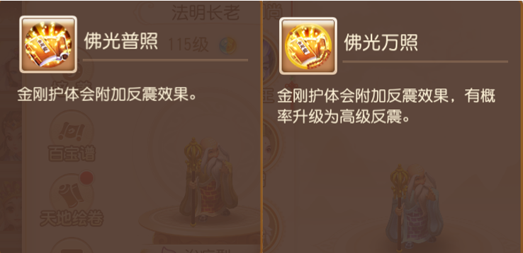 提到法明长老,就不得不提他那“浑身本领”。精通复活、精通解封、物理克星、物理增伤,本次进阶,着重强化了法明长老金刚护体附加的反震效果,进阶后反震效果概率升级成为高级反震,使反震的伤害更高,相信在后续战斗中也会发挥出更好的效果。