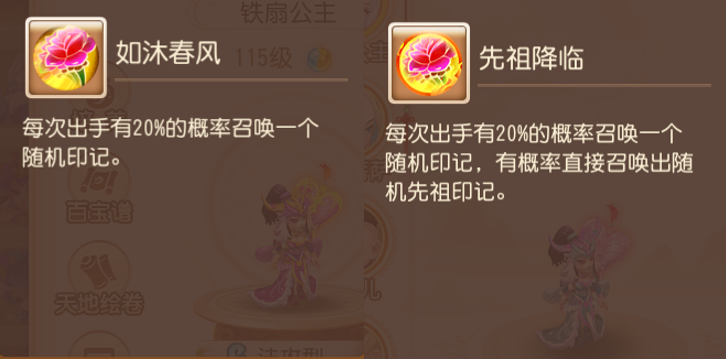 满培养的铁扇公主每次群秒后有20%概率召唤随机印记,除了印记的伤害或治疗能力,印记本身的血量也间接为铁扇公主增加了一定生存。进阶后铁扇公主在保持原有特色的同时有概率直接召唤随机先祖印记,直接增加一个作战单位,其战术地位必然继续增加。