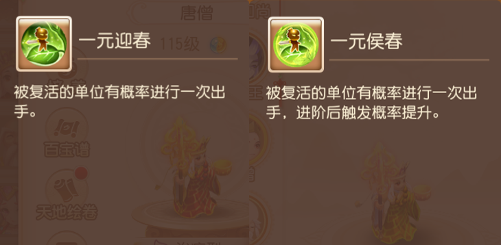作为使用较广的治疗助战,唐僧凭借复活后附加出手这一特色广泛被大家熟知。本次进阶后,一元迎春升级成一元侯春,复活后出手概率更高,相信在以后的竞技场PK中,由唐僧复活引起的“翻盘反杀”将会更多。
