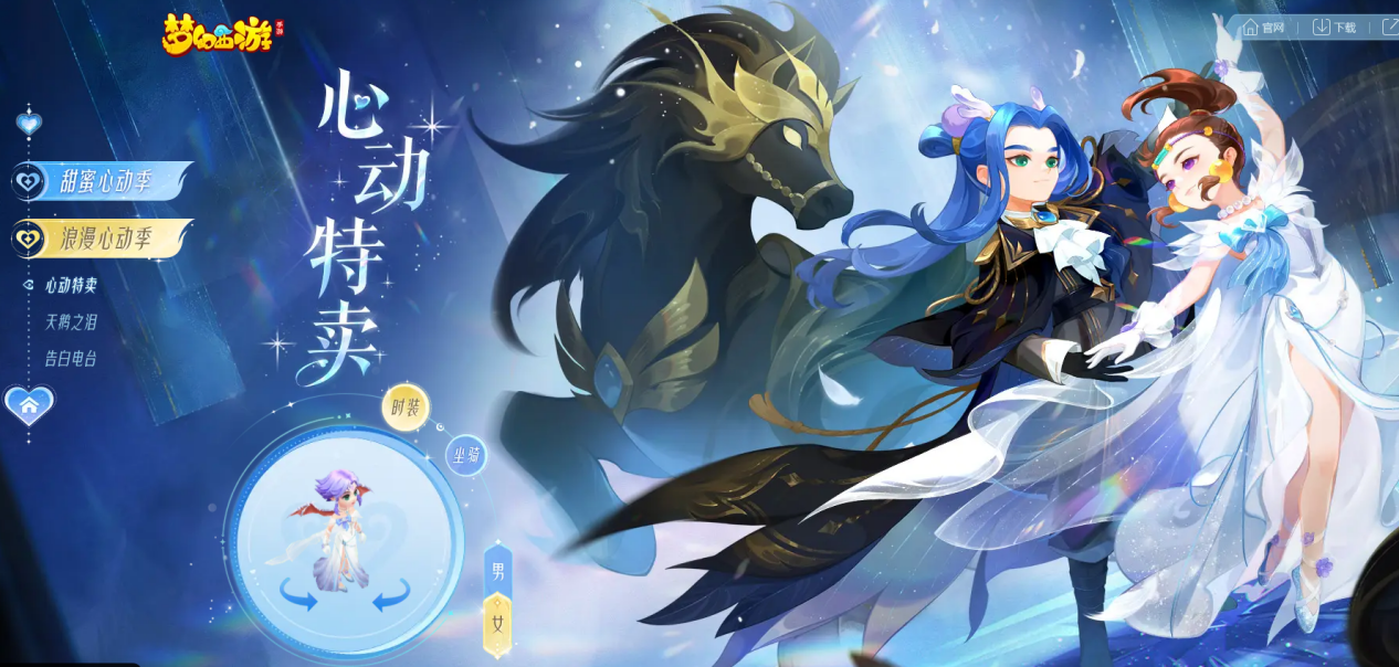 甜蜜时刻,比翼双飞。《梦幻西游》手游心动特卖活动现已开启!全新时装辉夜誓约&闪光恋曲、坐骑绝影马、特殊饰品一支玫瑰闪亮登场,更有稀有双人坐骑天鹅船等你来抽取!特卖商城同步上新,全新闪光之羽系列头像框&冒泡框、墨影足迹、深蓝之心队标等诸多新品等你来选购!这个情人节,不妨和你的TA换上新装同游三界,留下一段美好回忆吧!