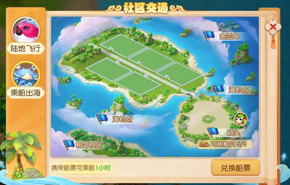 码头修复完成后,即可开启社区航海功能,只要携带船票就可以乘船自由往返周围群岛岛屿进行游玩,同时还可以在海上进行垂钓,享受大海风光。