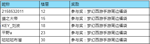 参与奖:梦幻西游手游周边福袋(5名,随机抽取)