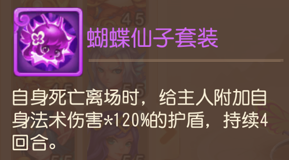 其套装效果:自身死亡离场时,给主人附加自身法术伤害*120%的护盾,持续4回合。离场后还能保护角色,这样的召唤灵谁不喜欢呢!