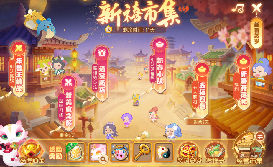 年兽王挑战再次来袭,每日成功挑战年兽王可获得大量福蛇通宝(简单难度60通宝、普通难度90通宝、困难难度135通宝)。